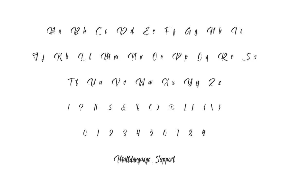 Halogenious Font includes a complete set of Uppercase and Lowercase basic characters, Numbers, Punctuation Marks and Symbols. The font has a professional touch written in marker dipped in ink with a natural smooth line effect implied in it. Powerful attraction can complement whatever your business is, such as bakery, beauty clinic, café, clothing brand, content creator, cosmetic, crockery, fashion, furniture, graphic design, photography, restaurant, spa salon, and much more!