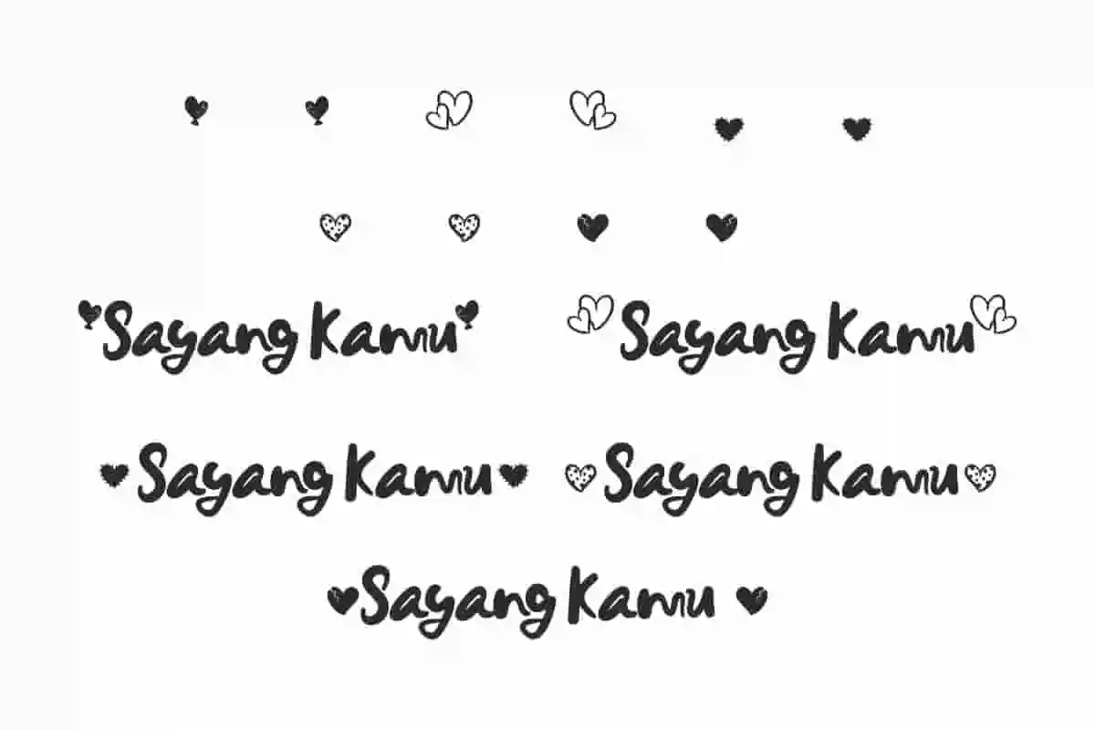 Sayang Kamu Font is a lovely handwritten calligraphy font with decorative heart swashes. It shows authentic and unusual looks.