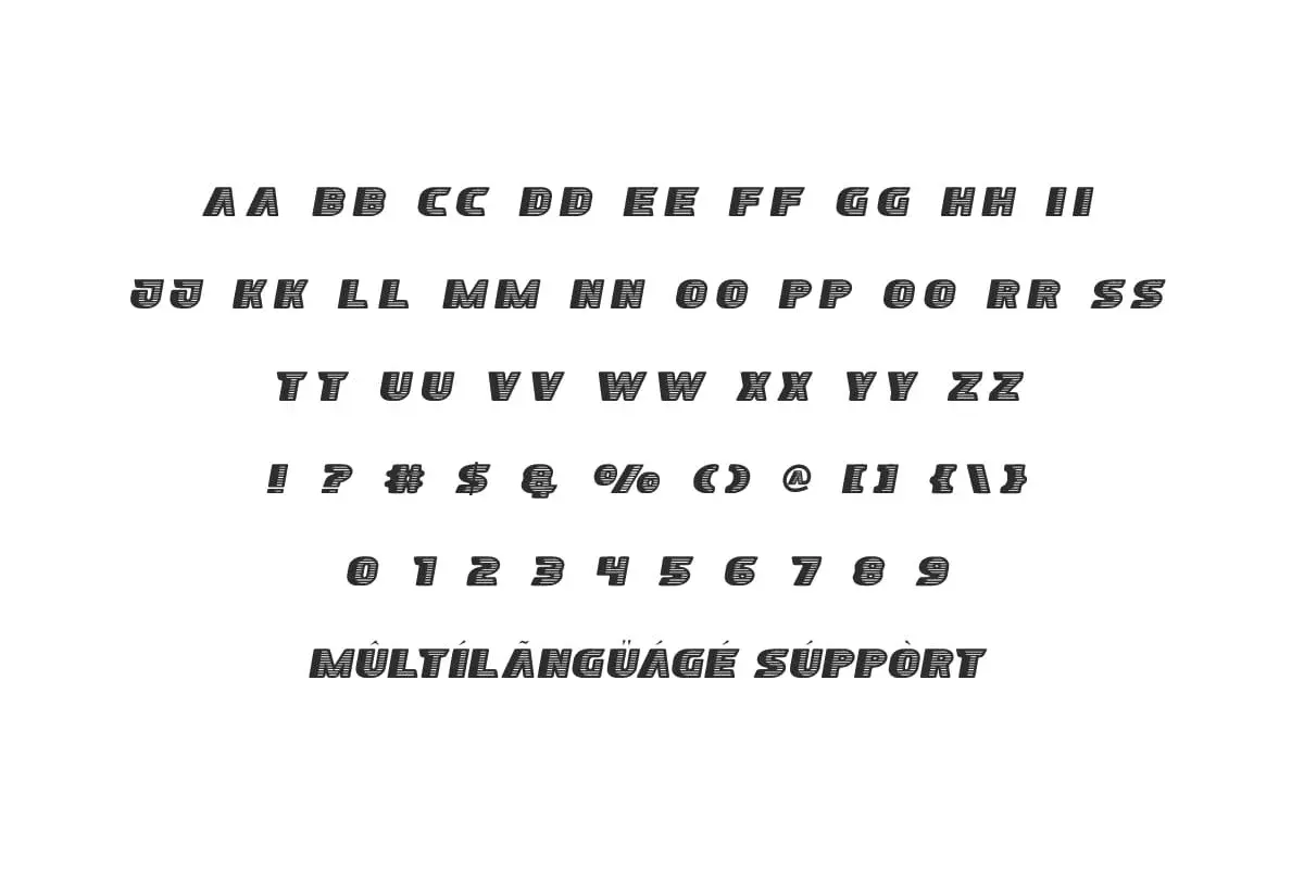 Seputar Font is a bold strong yet fun racing and futuristic display font inspired by Op Art. This striped typeface is rendered in large sizes with a comic touch where visual impact is needed. Perfect for accessories & gifts, barber, beverages, cafes, car wash, fashion, games, graphic design, restaurant, sports,