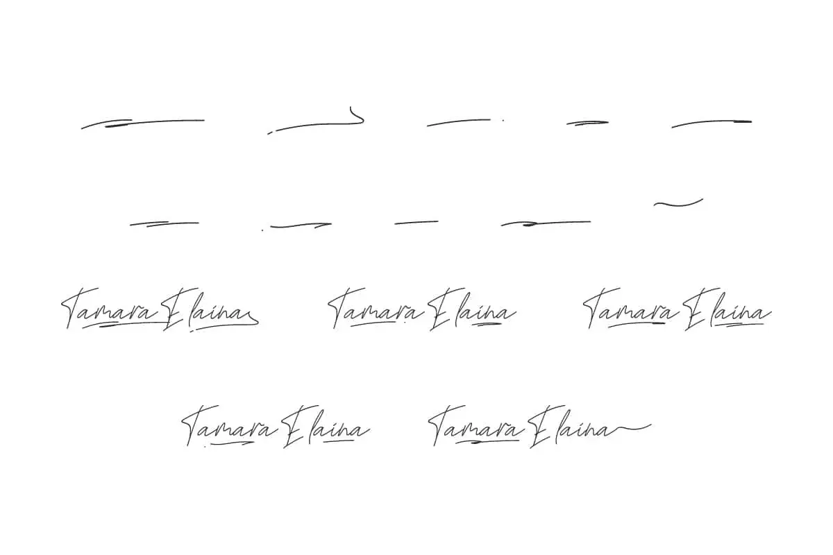 Tamara Elaina Font is an elegant monoline font with a signature script handwriting style designed in a modern way to create the most beautiful design projects. Perfect for banners, blogs, brand logo, brochure, covers, embossed design, greeting card, headers, invitation, label, mockup, packaging, sign board, stationery, sticker, template, title, watermark, website, etc.