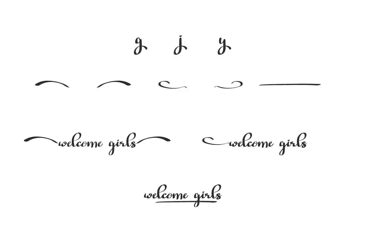 Welcome Girls Font comes with a full set of Uppercase and Lowercase Basic Characters, Number, Punctuation, Symbol. Also with the addition of Ligature and Swoosh characters to make it bond perfectly and give aesthetic value to the font. Use this for your business industry such event organizer, fashion, florist, nail art, printing, publishing, skincare, spa salon, wedding, etc.